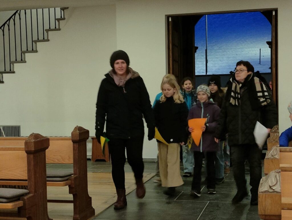 Zuletzt begaben sich alle Sternsingerinnen und Sternsinger der Jubla und Minis nach vorne und sangen mit den Anwesenden das Sternsinger-Lied. Sie waren am Nachmittag schon unterwegs, um in den Quartieren den Segen Gottes weiterzugeben.