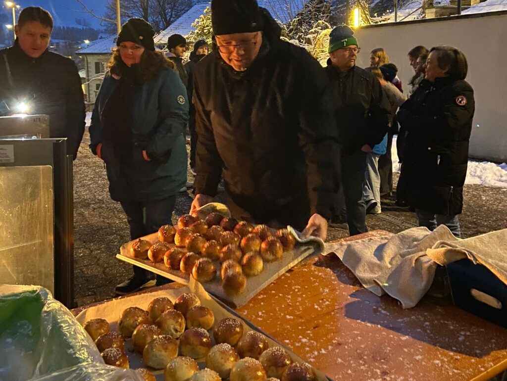 Nach dem Schlusssegen warteten draussen feine, vom Pfarreirat frischgebackene, noch leicht warme Königsbrötchen. Nach und nach setzten sich die Könige die Krone auf und bekamen dazu noch einen «Kerzenglücksbringer». So ging ein spezieller Anlass fröhlich zu Ende.